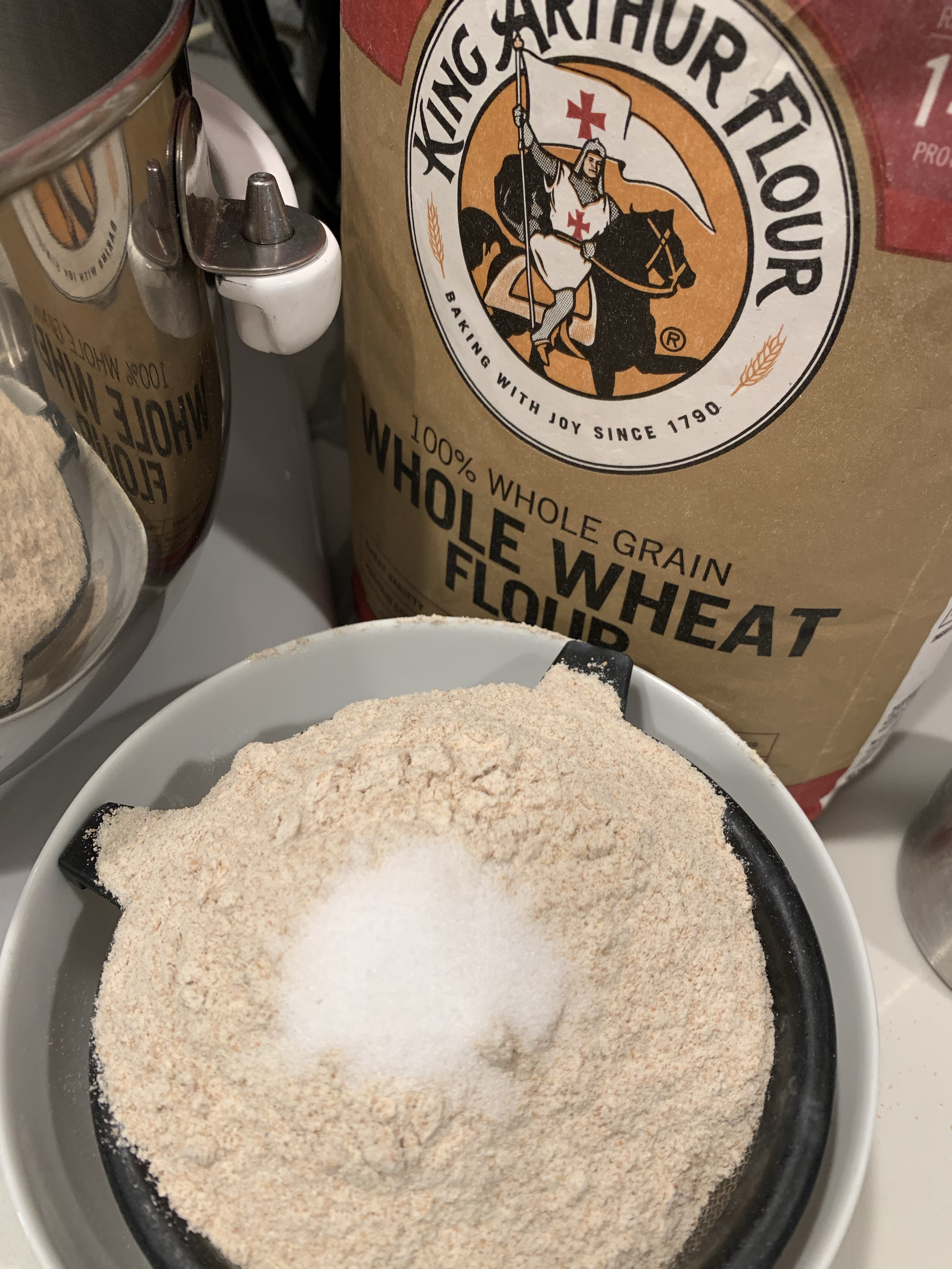5 cups of whole wheat flour; plus 1/2 cup for kneading
